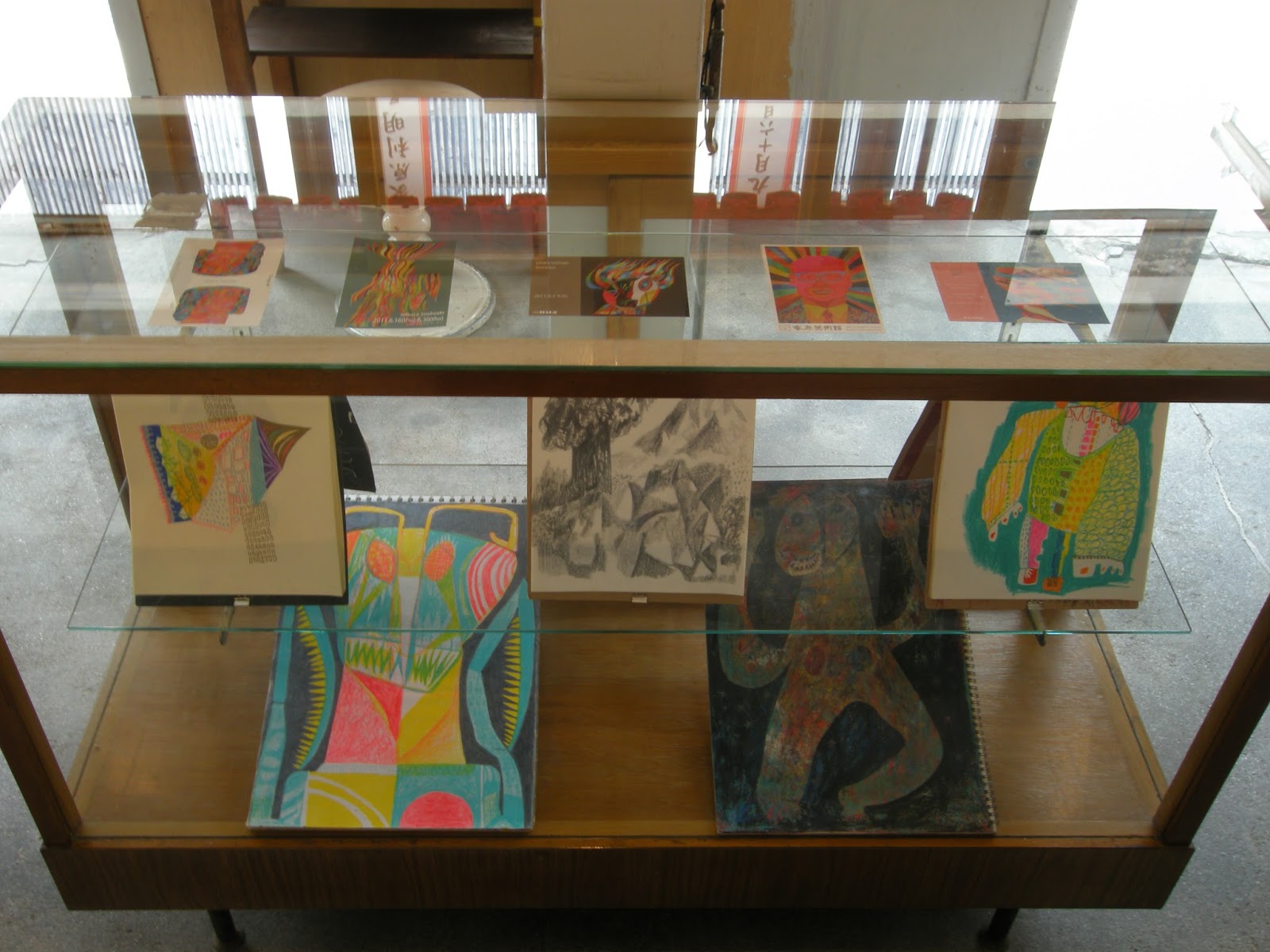 スケッチブック作品と、これまでの展覧会の案内ハガキ。